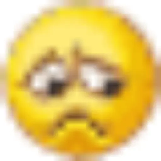 Rosto de emoji amarelo com expressão de surpresa ou preocupação, olhos arregalados e sobrancelhas franzidas.
