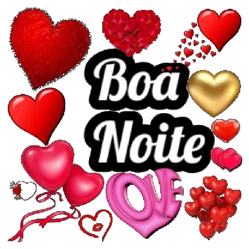 A set of red, pink, and gold hearts surrounding the text 'Boa Noite' in white with black outline.