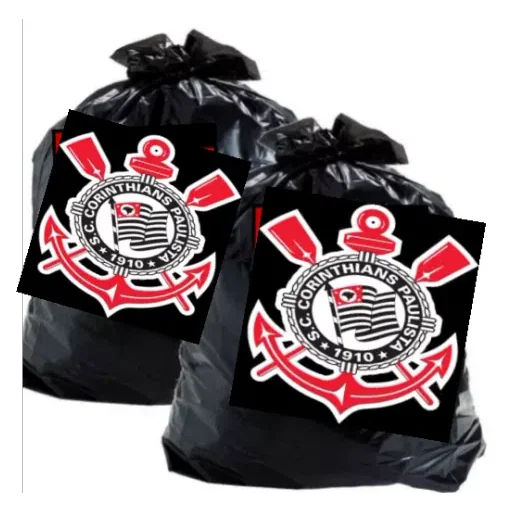 Escudo do Corinthians com âncora e texto 'Aqui tem um bando de loucos'