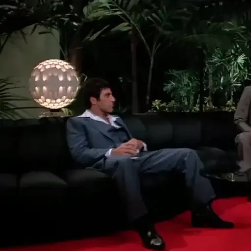 Um homem de meia idade dançando em uma sala com sofás e uma televisão ao fundo. Ele está usando um blazer preto e uma…