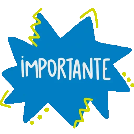 Blue starburst with 'IMPORTANTE' in white, surrounded by yellow broken lines and dots.
