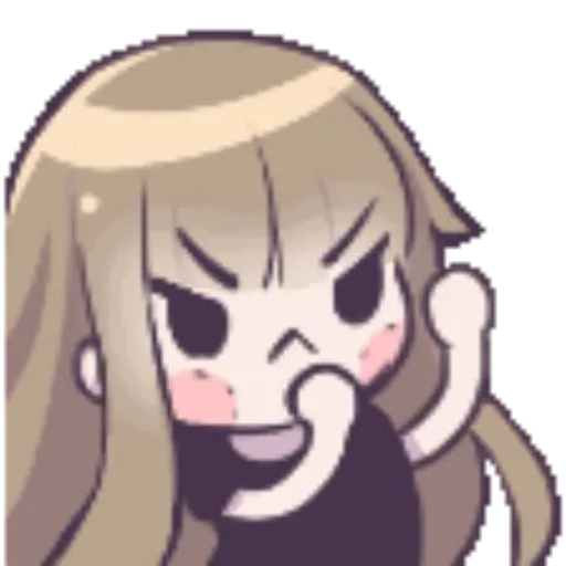 Anime girl with an angry and blushing expression, making a face and covering her mouth with her hand.