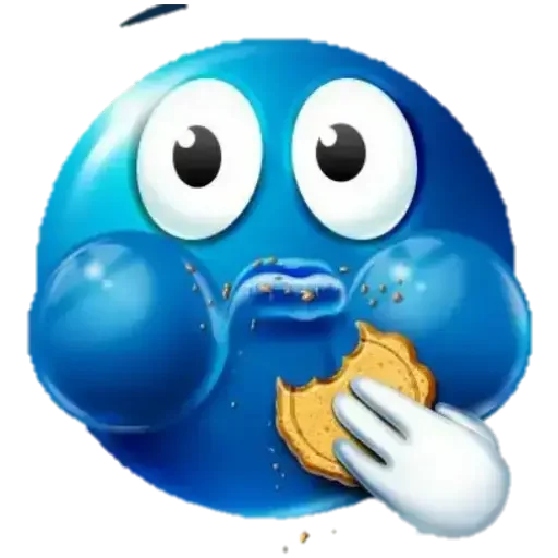 A blue emoji with big eyes and a surprised expression, eating a slice of pizza.