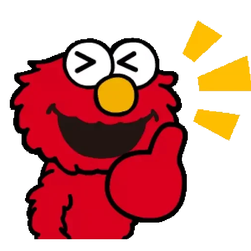 Elmo from Sesame Street with a surprised or excited expression, making a hand gesture and with yellow rays coming out of his face.