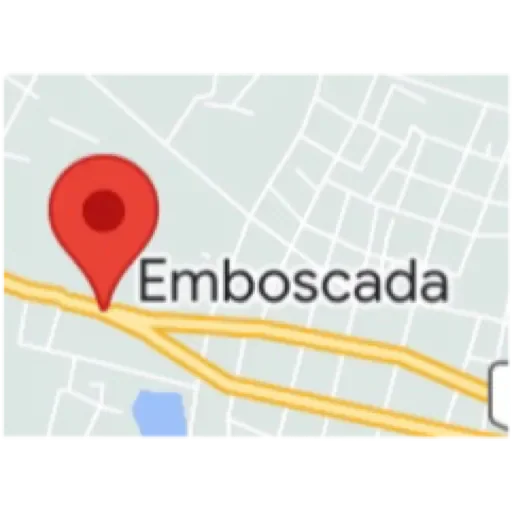 Um ícone de localização vermelha com o texto 'ESTOU AQUI' em letras vermelhas com contorno preto.