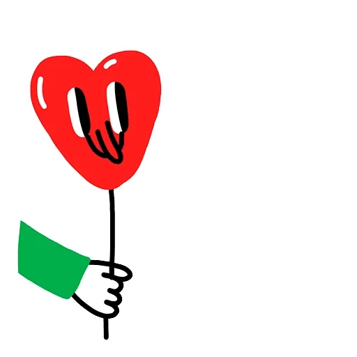 A red heart with a smiling face is held by a hand wearing a green sleeve.
