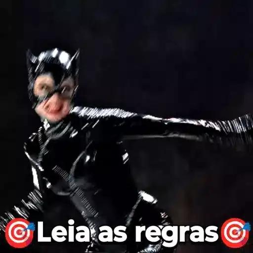 A woman dressed as Catwoman, in black, with mask and cape, against a dark background. The text 'Leia as regras' appears in white at the bottom.