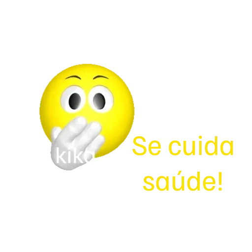 A yellow emoji with a surprised and concerned expression, hand in front of mouth, with the text 'Se cuida saúde!' in yellow.