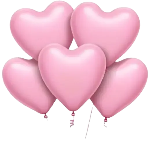 Five shiny pink heart-shaped balloons, grouped and tied with strings.