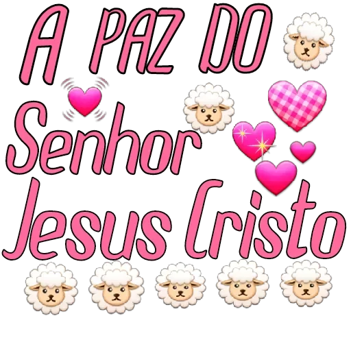 A sticker with the text 'A PAZ DO Senhor Jesus Cristo' in pink letters, accompanied by cute sheep and pink hearts.