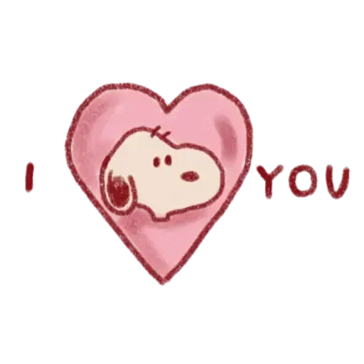 A pink heart with Snoopy inside, looking to the side, with 'I' and 'YOU' in red text beside the heart.