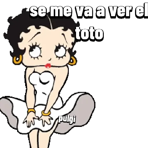 Betty Boop sitting with a disapproving expression, wearing white, with the text 'se me va a ver el toto' above her.