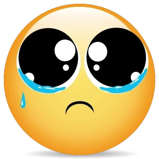 Yellow face emoji with large sad eyes, blue tears, and a sad expression.