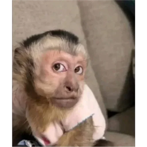 Macaco com expressão séria, mãos posicionadas ao redor da cabeça como se estivesse com dor de cabeça, fundo cinza.