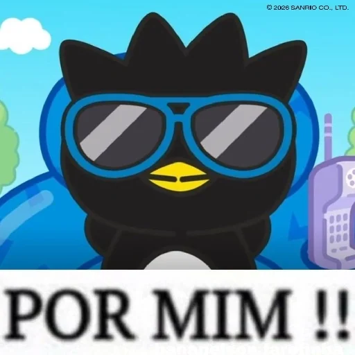 A black bird wearing blue sunglasses and having a yellow beak, with the text 'POR MIM !!' at the bottom.