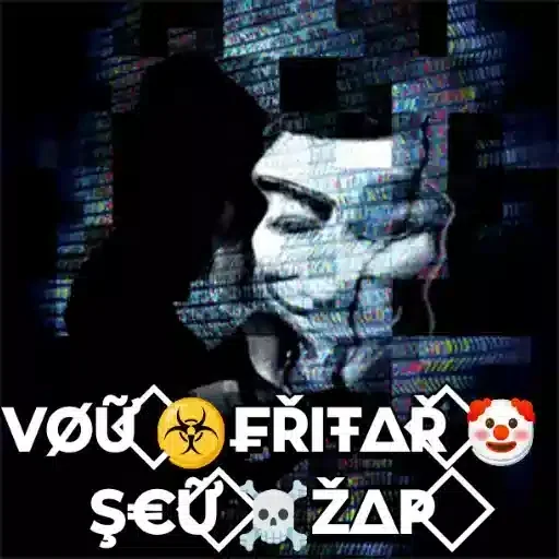 A distorted image of a person with the text 'VOU ERITAR SEU R$ ZAR' in white letters and symbols around it.