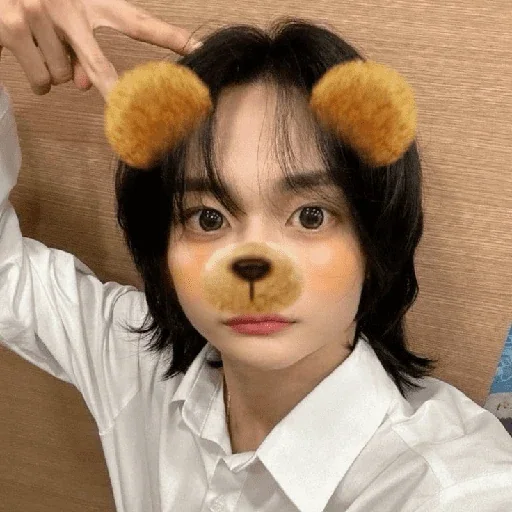 Uma jovem com cabelos pretos e dois coques laterais, vestindo um moletinho preto, olhando para frente com uma expressão…