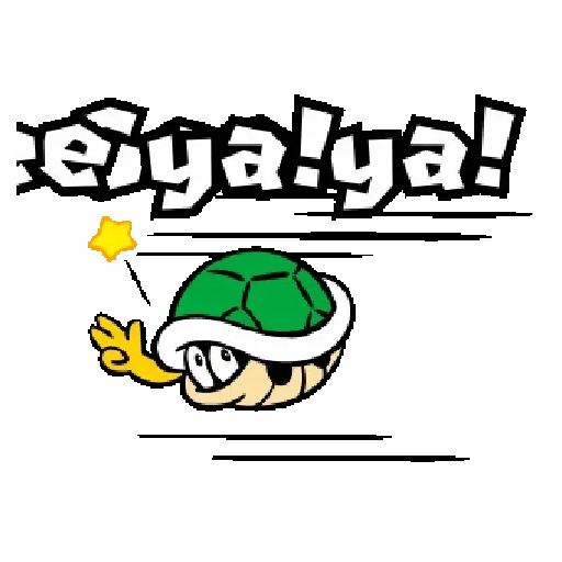 A Koopa Troopa from Super Mario, with an animated expression and 'eya! ya!' in large letters above, appearing to move quickly with a star near its hand.