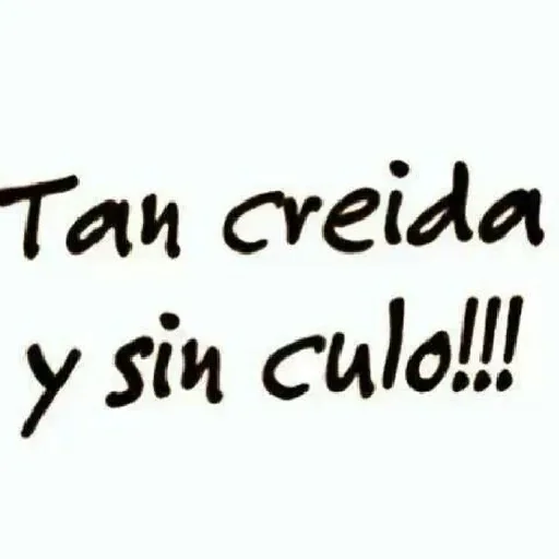 A black text in an informal handwriting that says 'Tan creida y sin culo!!!'.