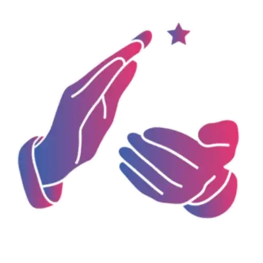 Two colorful hands in pink and purple tones with a star above, representing a wish or dream.