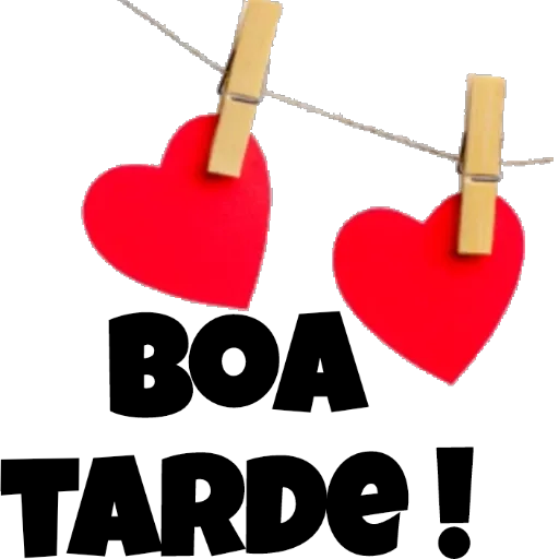 Two red hearts hanging from a string with wooden clothespins, with the text 'BOA TARDE!' in black letters.
