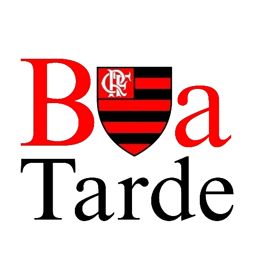 Flamengo shield with 'B', 'a', and 'Tarde' in red and black, with the text 'Boa Tarde'.