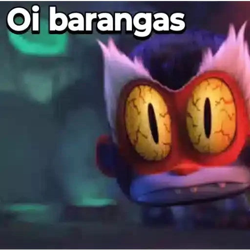 A monster with large yellow eyes and spikes on its head, with the text 'Oi barangas' on top.