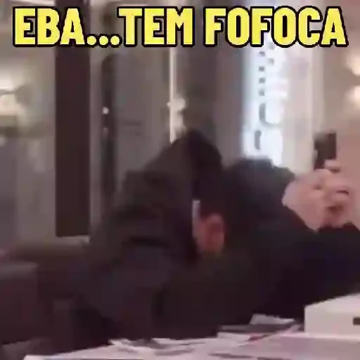 Um homem de meia-idade com um casaco castanho e uma camisa vermelha, com o texto 'Escuta aqui sua Maluca' sobreposto.