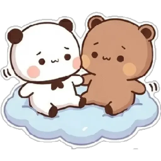 Two cute bears, one white and one brown, sitting on a cloud, with cute expressions and rosy cheeks.