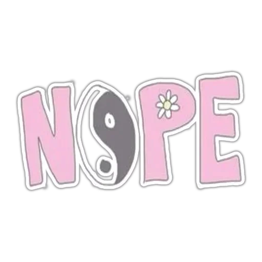 The word 'NOPE' in large pink letters with gray outline, where 'O' is a black and white yin yang symbol and 'P' has a white flower.
