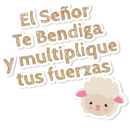 A cute sheep with Spanish text that reads 'El Señor Te Bendiga y multiplique tus fuerzas'. The sheep has black eyes, a pink nose, and pink ears.