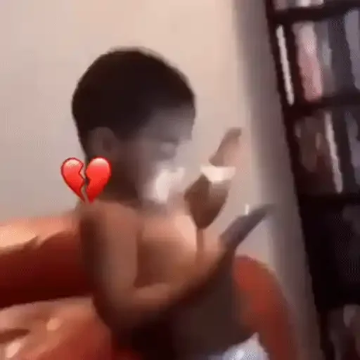 Shirtless boy with two red hearts over his left shoulder, making a gesture with his hands.