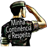 Um soldado em uniforme militar presta continência. No verso da camisa está escrito 'Minha Continência e Respeito'.