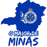 Um mapa do estado de Minas Gerais em azul com o escudo do Cruzeiro Esporte Clube sobreposto, incluindo uma pomba e uma…