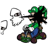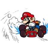 Um dinossauro verde, parecido com o Yoshi, está sentado em um kart, com uma expressão de alegria e boca aberta,…