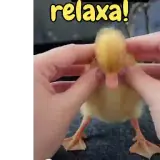 relaxengracadofofoUm pato filhote amarelo sendo segurado por duas mãos, com a palavra 'relaxa!' em amarelo acima.Added on April 19, 2026·Mixed · Reactionpatoduckpatito