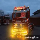 luzeslightslucesnoitenocheCaminhão vermelho com luzes amarelas acesas, incluindo faróis e luzes no topo, em frente a um prédio à noite. Há um…Added on April 19, 2026·Illustration · Fillercaminhãotruckcamión