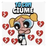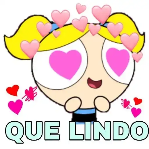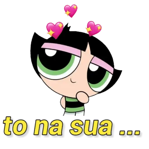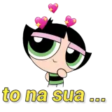 Uma figurinha colorida da Blossom, personagem do desenho Powerpuff Girls, com expressão feliz e olhos grandes. Ela tem…