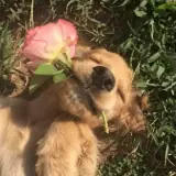 Cachorro golden retriever usando óculos de sol rosa em forma de coração e um laço rosa na cabeça e no pescoço.