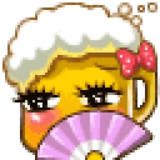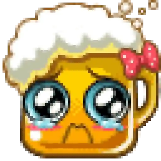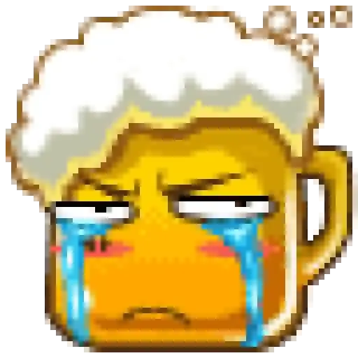 Cerveja com expressão de desânimo, olhos semicerrados e bochechas rosadas, espuma branca saindo da boca.