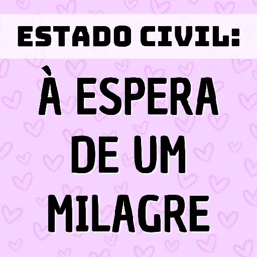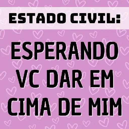 Um fundo rosa com corações brancos, com um banner branco no topo e texto preto em três linhas: 'ESTADO CIVIL:',…