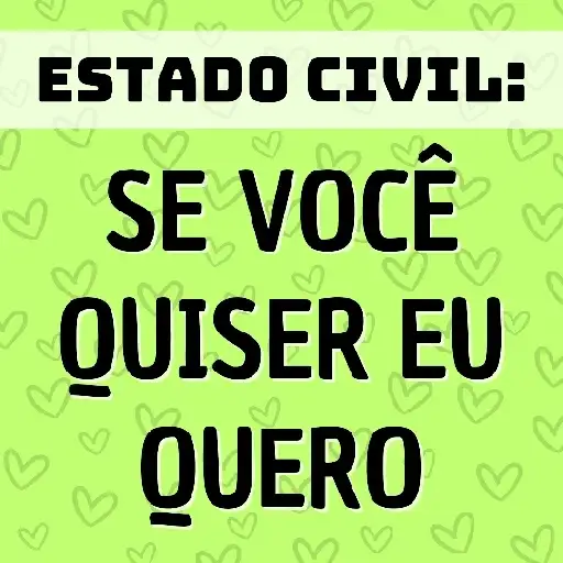 Um fundo verde claro com corações pequenos e um texto em preto que diz 'ESTADO CIVIL: SE VOCÊ QUISER EU QUERO' em…