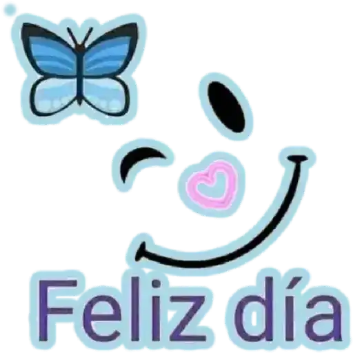 Um arco-íris colorido com borboletas e a frase 'Buenos Días' em letras azuis.