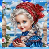 Colección de stickers con niñas bonitas animadas en diferentes escenarios y vestidos. Todas tienen cabello ondulado y expresiones simpáticas.
