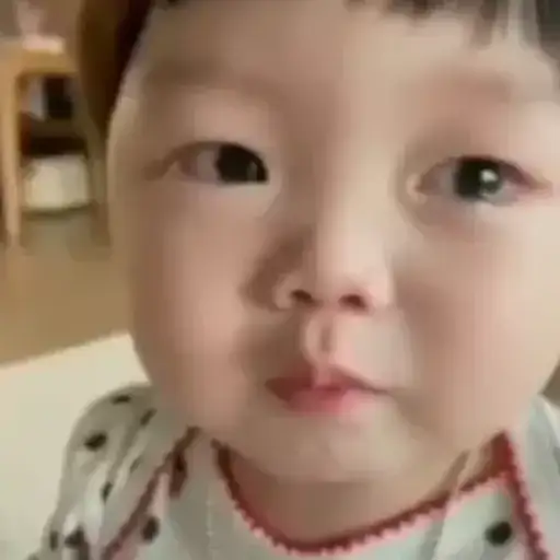 Menina com olhos fechados e expressão de descontentamento, lábios franzidos e bochecha inflada.