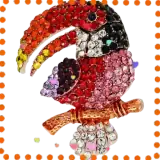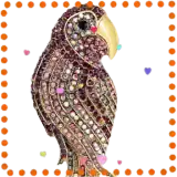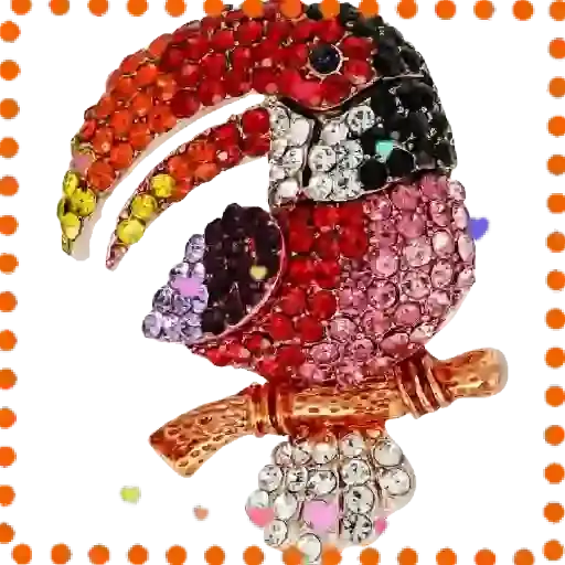 Esta colección presenta una variedad de pájaros diseñados con piedras preciosas. Cada imagen muestra un pájaro diferente, como búho, colibrí, loro y águila, todos adornados con piedras coloridas y brillantes.