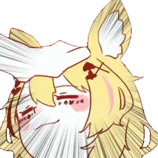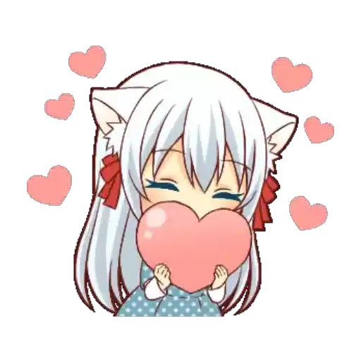 Uma menina de anime com cabelo azul e orelhas de gato, vestindo um suéter bege e gravata rosa, com estrelas amarelas ao…