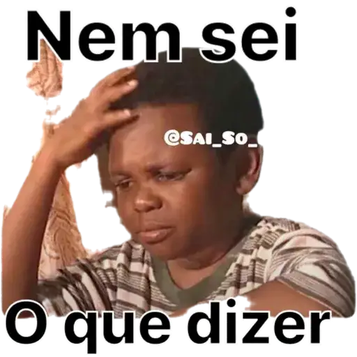 Um jovem com a mão na testa e expressão de desconfiança ou descrença, com o texto 'Nem sei o que dizer' sobreposto.