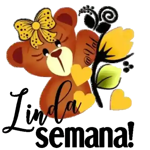Um ursinho marrom com um laço amarelo no cabelo e um texto 'Linda segunda-feira!' em letras pretas. O ursinho tem um…