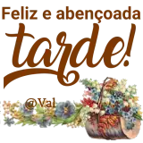 Uma cesta de flores coloridas com a mensagem 'Feliz e abençoada tarde!' em letras marrons. Abaixo da mensagem, '@Val'…